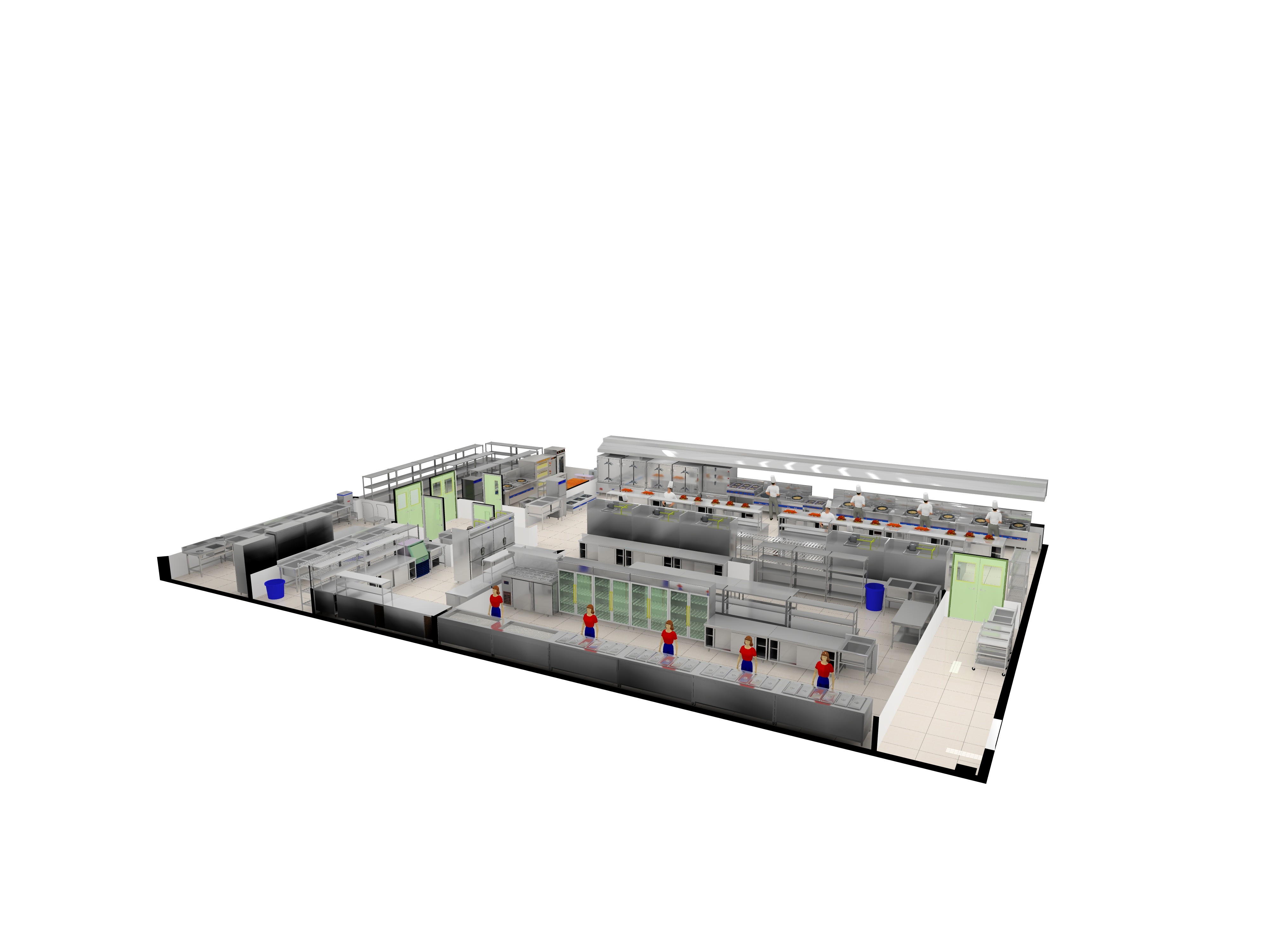 商用厨房整体功能完备包含科学合理的设备选配与厨房布局.两者是分不开的。厨房各个功能部位环环相扣,既不能少一环,也不能多一环,更不能产生运行瓶颈。应把各种单一设备納入系统通盘考虑。对厨房进行合分析,厨房设备选配要确保整体功能不缺项,还要注重要设备配置和配套设备配置科学合理,不能顾此失彼,影响整体功能。
