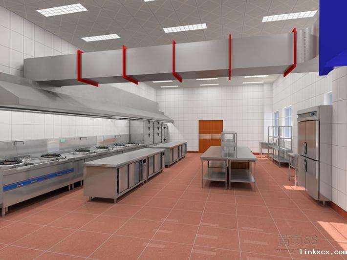在厨房设备布局时,排烟罩和高大的厨房设备要尽量不挡窗,便于光照和通风。