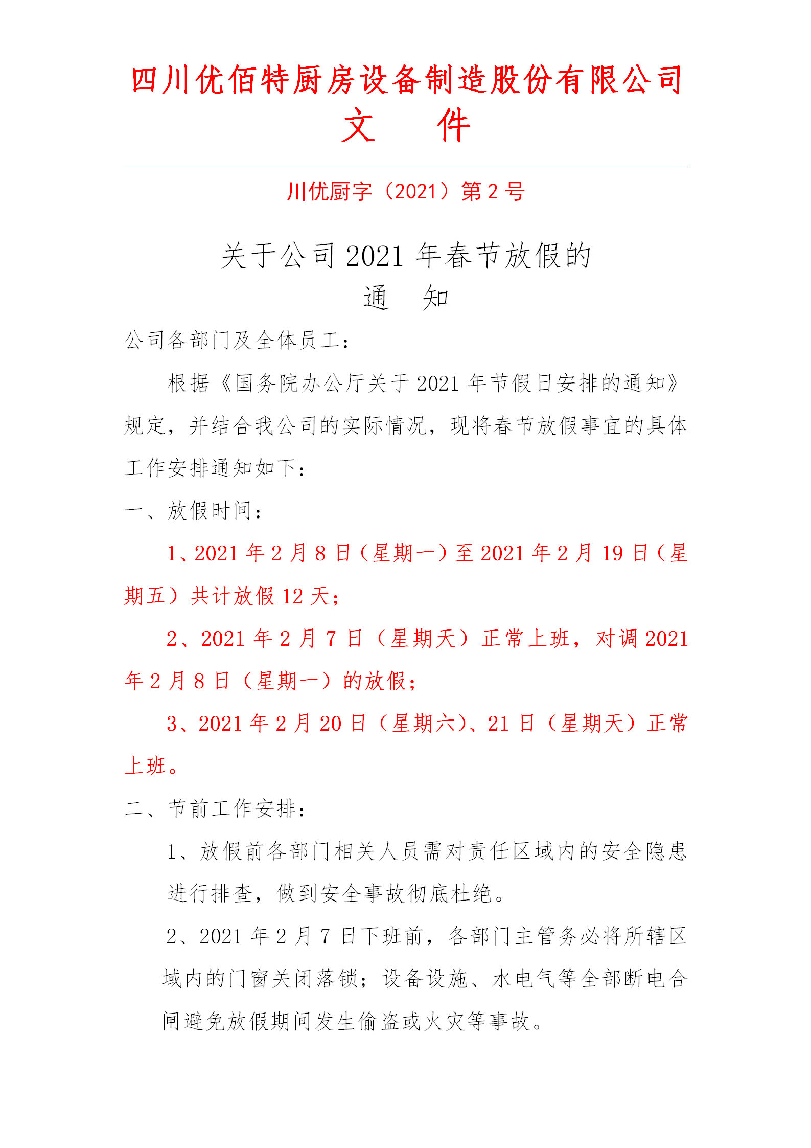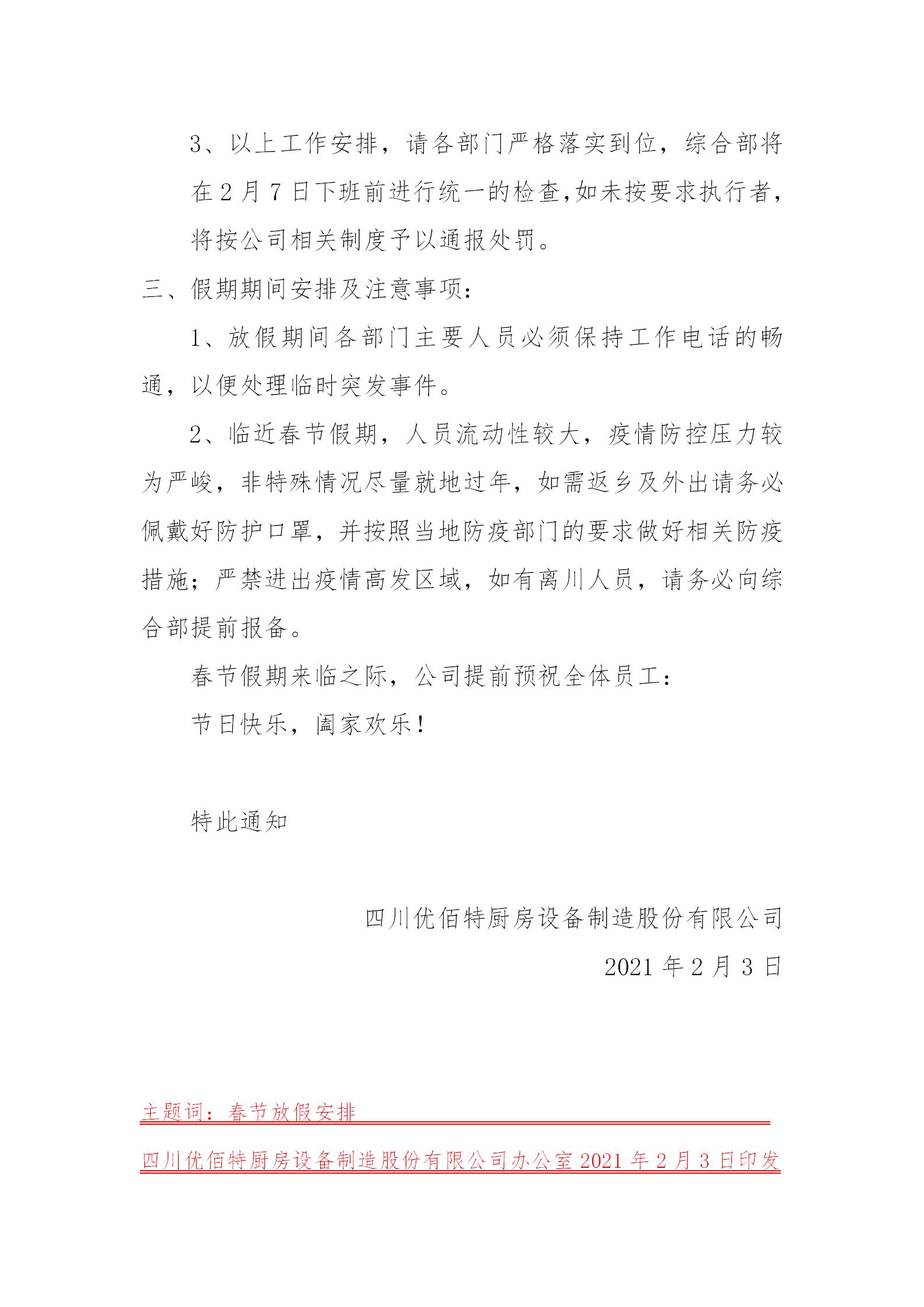 感谢你这一年来对米兰娱乐官方网站入口的支持,春节假期将至,米兰体育电子官网网址是多少公司祝你和你的家人新春快乐,财源广进,万事如意。我公司根据《国务院办公厅关于2021年节假日安排通知》,并结合我公司实际情况,对春节放假做出如下安排: