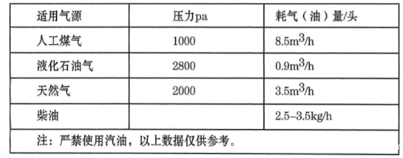 2、燃料:柴油、煤气、天然气、液化气(严禁使用汽油)。