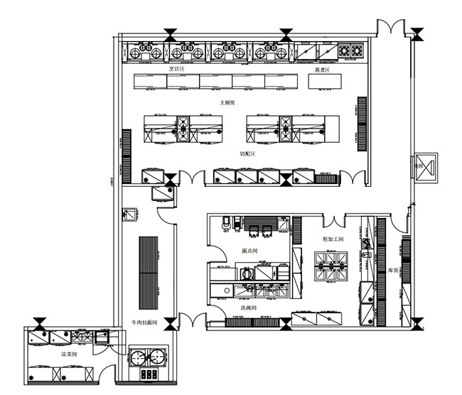 1.与一般通用厨房不同的考虑,例如,一些酒店、大食堂把明档、开放式厨房、风味小吃设在餐厅,增加了服务项目,也增加了厨房面积。